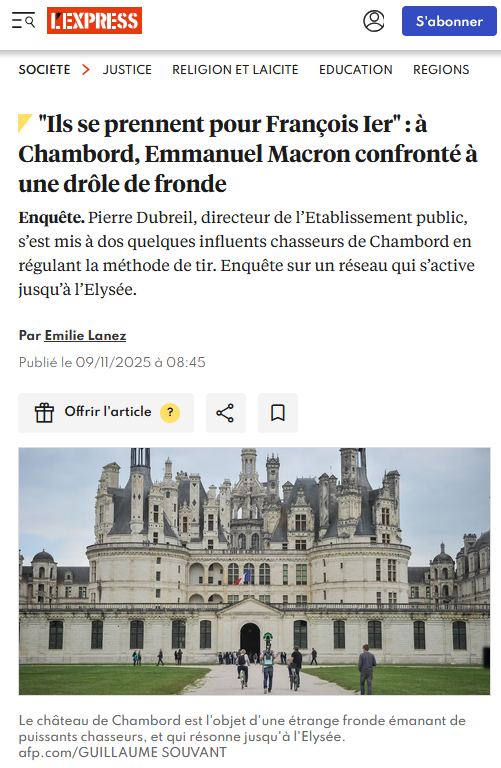 Polémique à Chambord! Pierre Dubreuil, le directeur général de Chambord impose désormais la traque affût plutôt que la battue. Ces méthodes de chasse sont antagonistes :