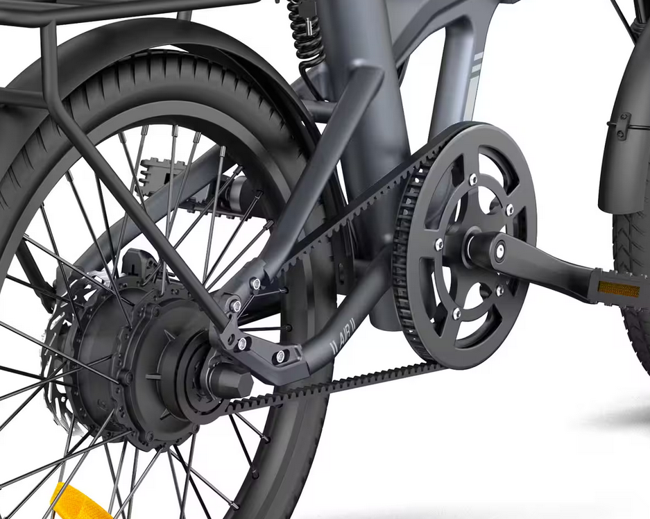 La courroie remplace avantageusement la chaîne pour une utilisation en ville. Pas d’entretien, pas de graisse salissant le pantalon, silencieuse, elle est un peu plus chère que la chaîne mais plus robuste.