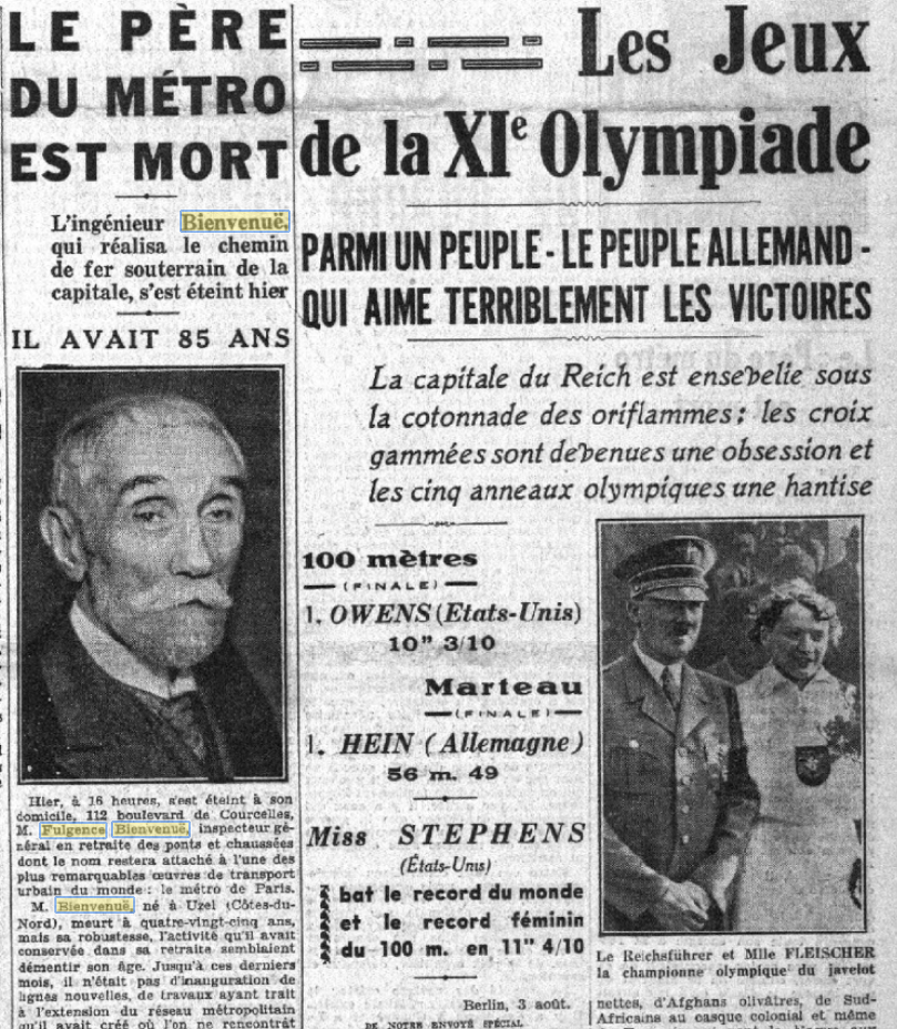 Le père du métro de Paris avait le bras gauche amputé suite à un accident dans l’Orne en 1881. Fulgence Bienvenüe, ancien élève de Polytechnique et des Ponts et Chaussées, a consacré trente ans de sa vie au métro parisien, de 1900 à 1932.