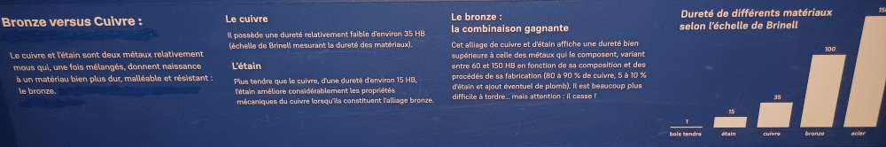 Le bronze est un alliage de cuivre (90%) et d’étain (10%). Le mélange est bien plus résistant que le cuivre et l’étain pris isolément.